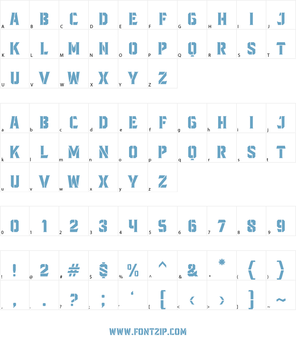 Blacktroops Stencil Font Sample Character
