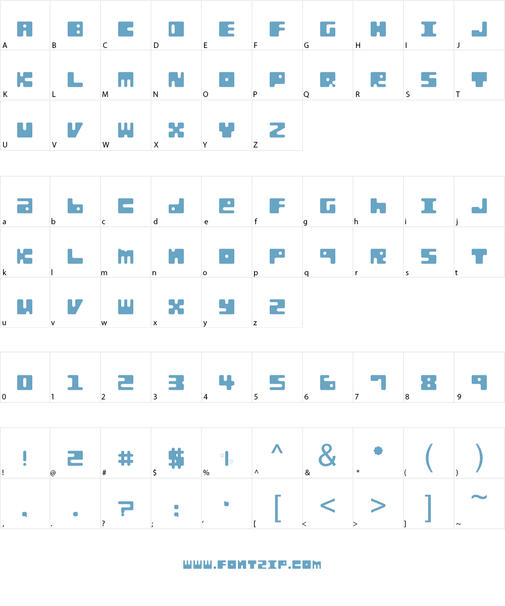 Shortly after I began to design this typeface, it was brought to my attention that there were a couple of similar typefaces on the market. These 'square' typefaces had one difference, however. With mine, I was intending to attain to a strictly 'square', mono-spaced typeface, that had LEGIBILITY as the utmost objective.